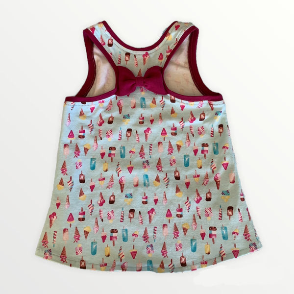 Our Girls Racer Back Tank is a favourite with the cute peekaboo bow in the back. It's a playground favourite as its loose fitting and comfortable in our super soft Cotton Lycra.
